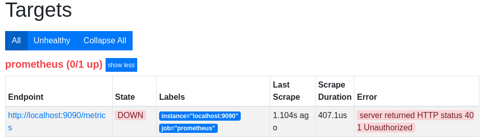 curl -u '<user>:<password>' http://localhost:9090Sauce: Защита сервера Prometheus с помощью basic аутентификации