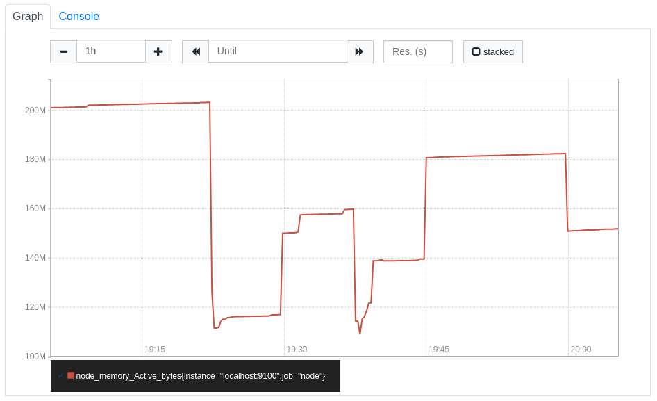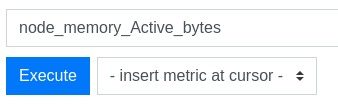 В поле вводишь запрос (я ввел node_memory_Active_bytes) и нажать Execute, чтобы появился график с кол-вом потребления байтов ОЗУ: