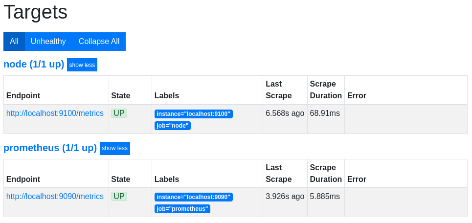 - targets: ['localhost:9090']