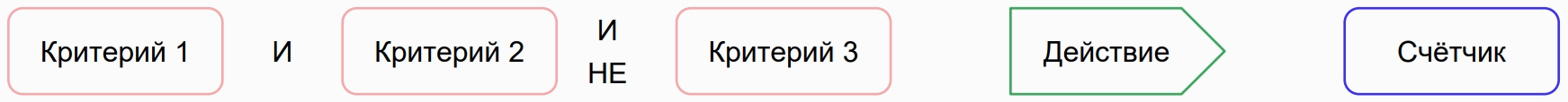 Состоит из критерия/ев, действий/я и счетчика: